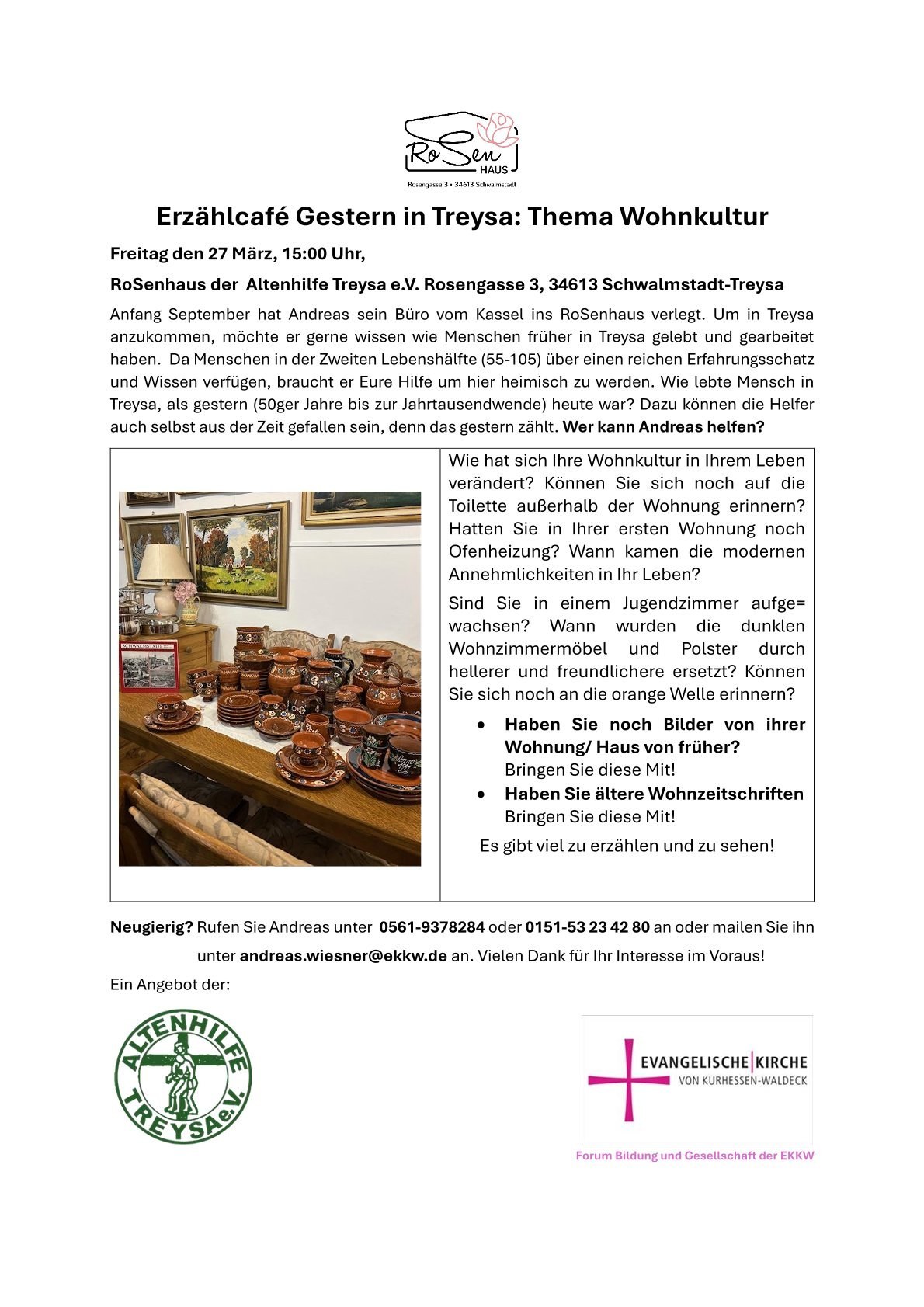 Erzählcafé: Wohnen, am 27.03.2026, 15 Uhr